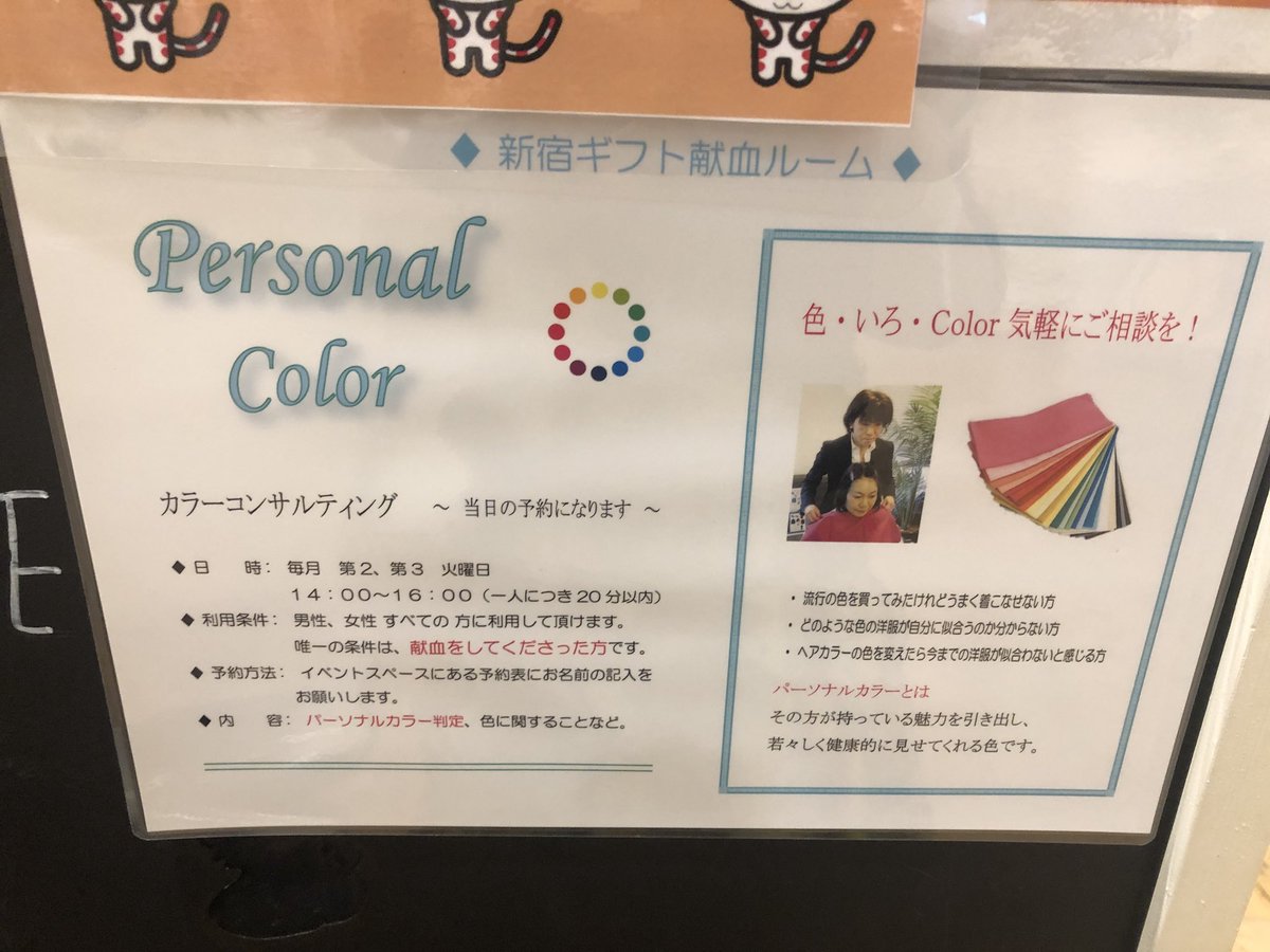 パーソナルカラー診断を受けてみたいけどお金が という方に 献血ルームなら無料で受けられるぞ セラピーやマッサージをしてくれる場所も Togetter